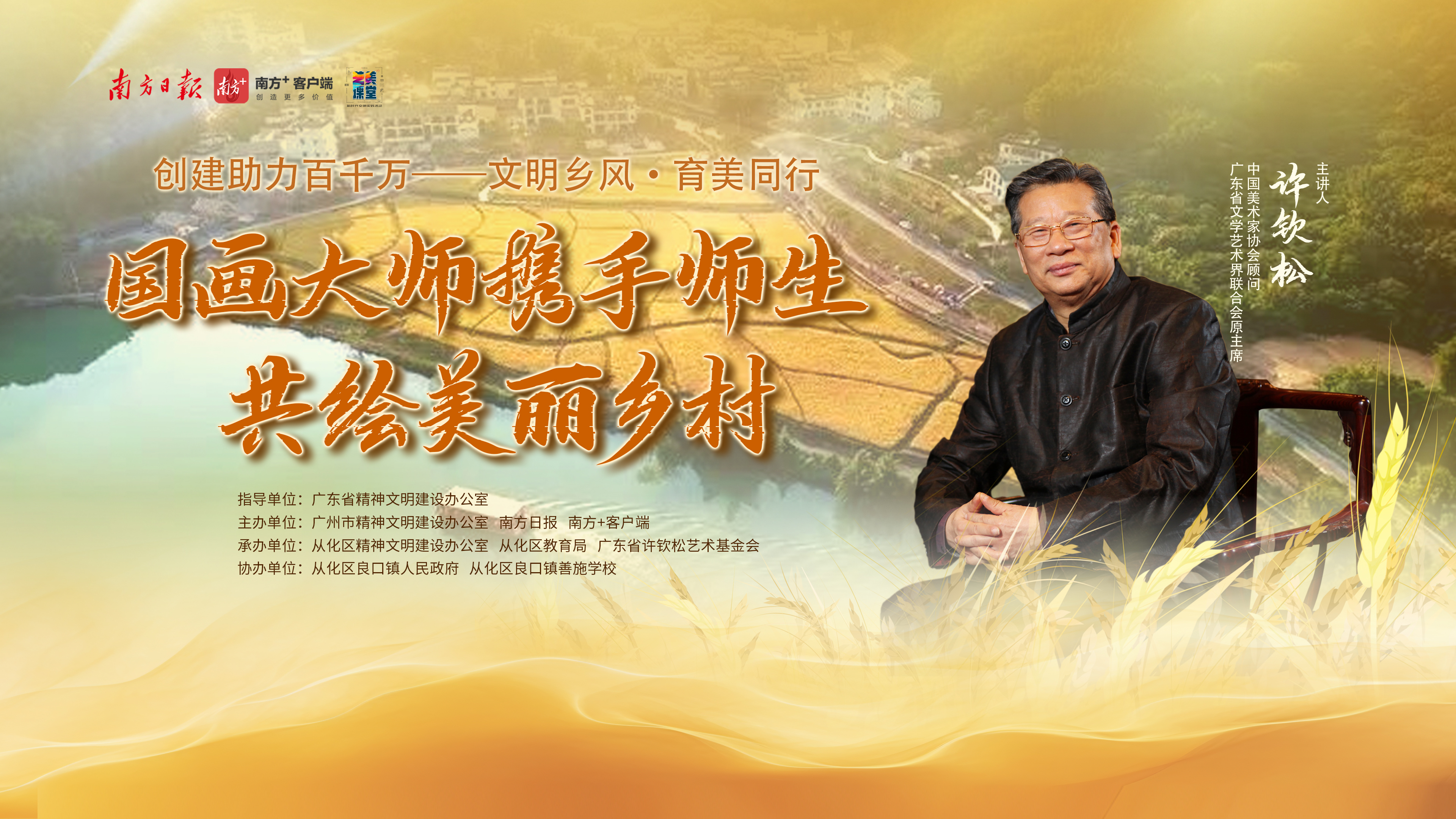10月11日,“艺美课堂”新时代文明实践活动第三期将在广州市从化区良口镇米埗村举行。本期活动以“创建助力百千万——文明乡风·育美同行”为主题,特邀中国美术家协会顾问、广东省文学艺术界联合会原主席、著名画家许钦松深入田间地头,与基层美术教师、学生共同开展一场融合教学、写生与创作的公益美育课堂。