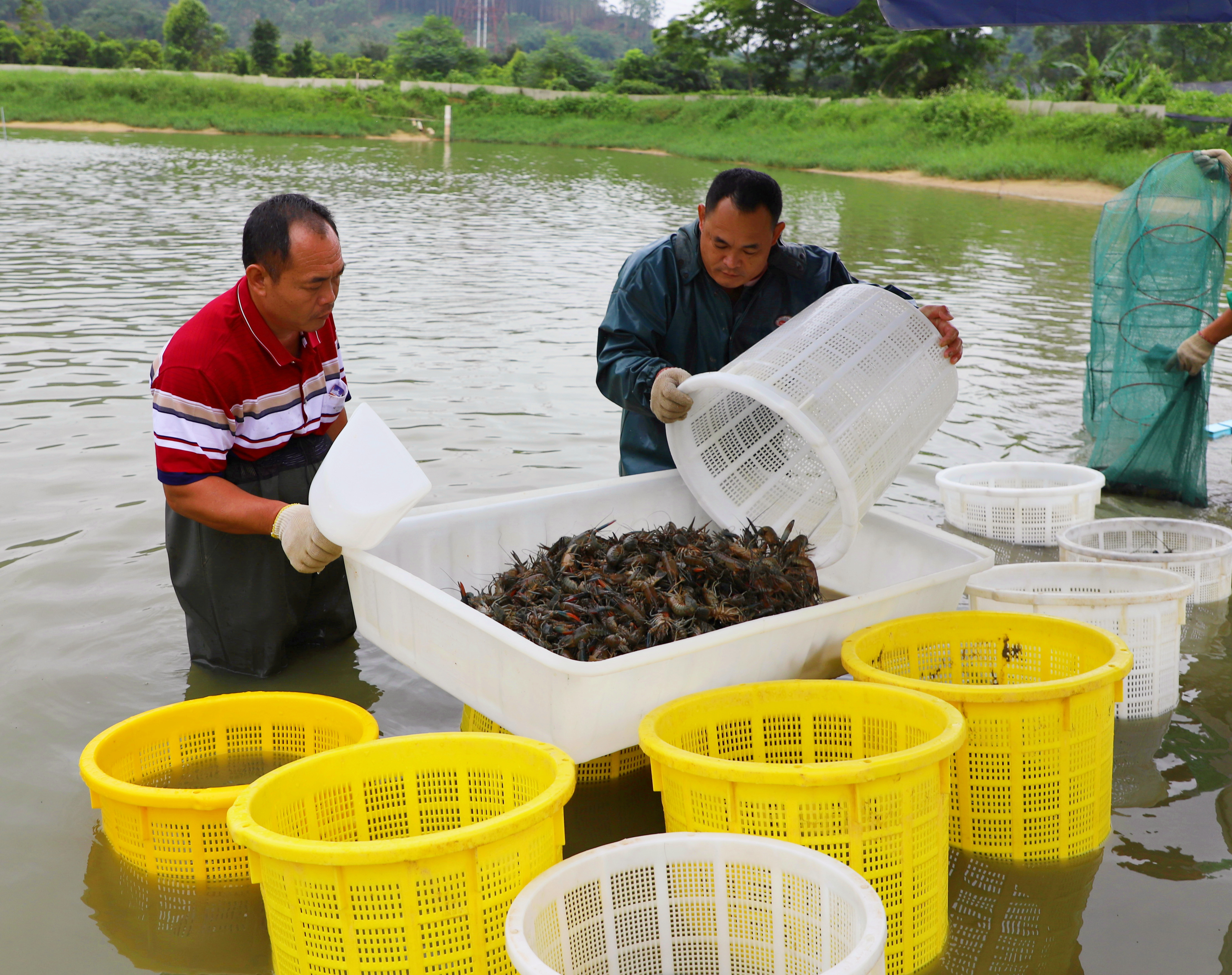 转型的艰辛与不确定性,让不少村民望而却步。“一只虾卖几十块?怕是忽悠人的吧。”“这么娇贵的东西,又是引进物种,我们哪养得活?”为此,村党总支推出一系列扎实举措:推行“党组织牵头+养殖能人示范”模式,开展结对帮扶,把技术送到塘边;成立金峡水产养殖农民专业合作社,提供统一种苗、技术支持和保底收购;争取镇党委支持,打造“鹤山金峡蓝龙”品牌,与外地客商签订长期协议,发展蓝龙虾预制菜产品,稳步拓展销路至珠三角、湖南、湖北等地……